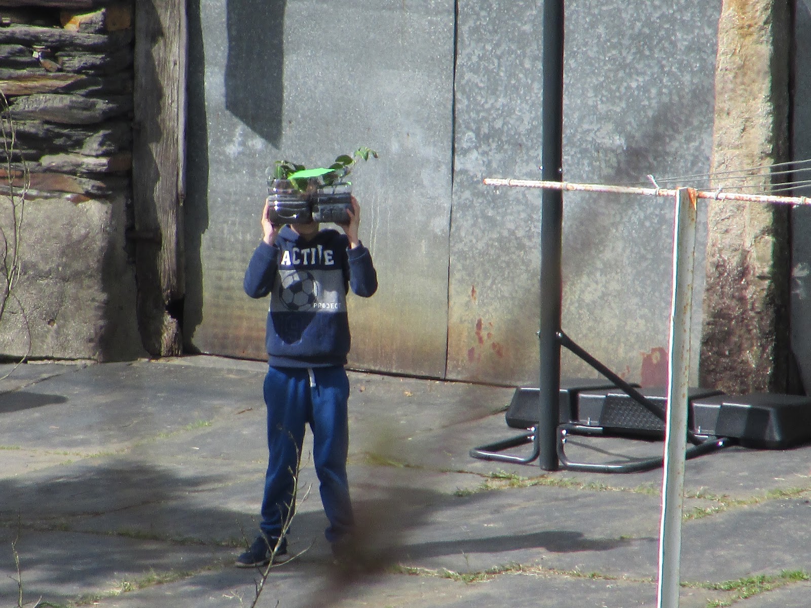 O zoom deixou-me ver o que fez e umas cordas vocais bem potentes deixaram-nos conversar! Os vizinhos (meus, porque ele tem a sorte de ter o espaço todo só para ele) é que devem ter achado que eu estava maluquinha!