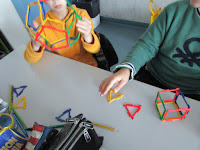 Estamos a trabalhar os sólidos e hoje a aula foi uma diversão por causa do material que usámos, o POLYDRON.
