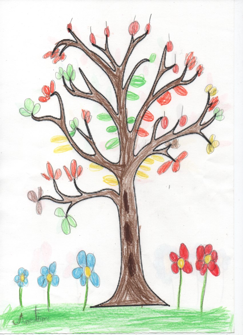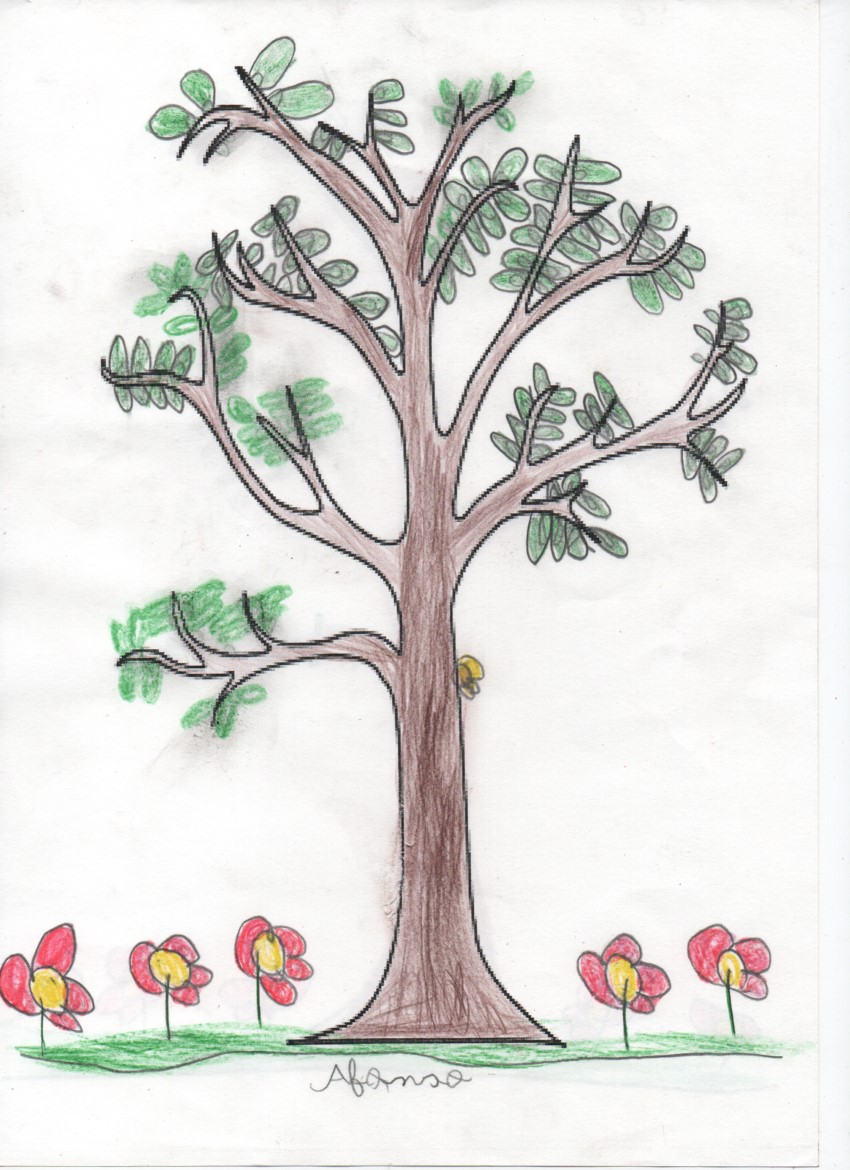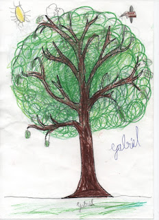 Cada um representou a sua árvore, alguns desenharam também outros seres que a acompanhavam...