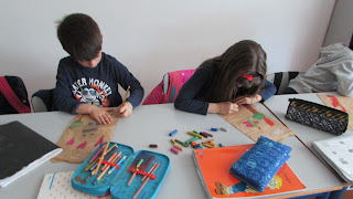 Na sala juntamos as duas e começamos a criar Caligramas.