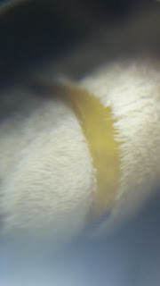 A professora tirou muitas fotografias, primeiro normais, depois com a lupa. Pudemos ver os pormenores e são espantosas! Se aproximarmos muito a imagem, o corpo delas parece as costas de um cão peludo! Conseguimos ver os olhos, enormes...