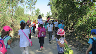 As árvores do nosso viveiro foram tratadas por nós até agora. Era preciso controlar ervas daninhas e regar, sobretudo ultimamente, nestes dias muito quentes. Todos os fins de semana a professora vinha regar as plantas pois o sol era muito quente!